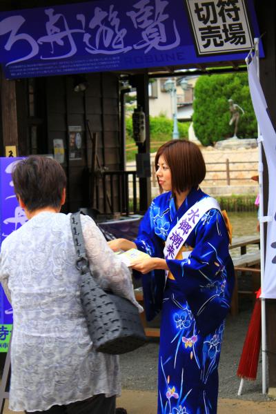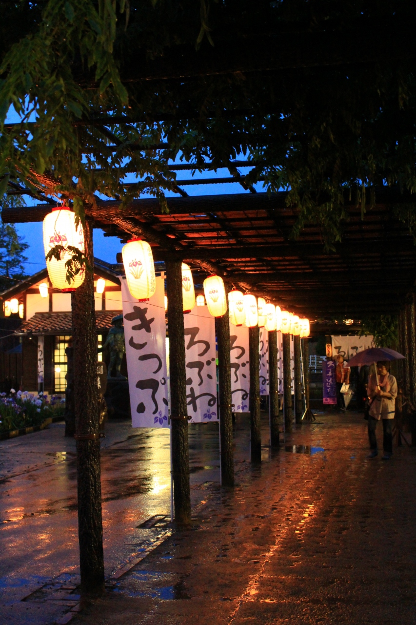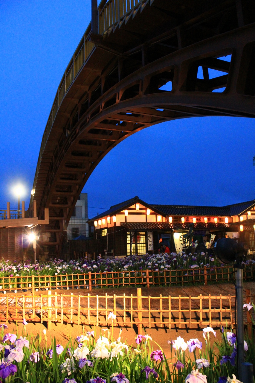 お祭りでは水郷潮来を代表する行事である有名な嫁入り舟や伝統芸能のあやめおどり、潮来ばやしの演奏、潮来の夏を熱く彩る八百有余年の歴史と伝統を持つ8月のおまつり「潮来祇園祭禮」に演奏されるお囃子の披露に合わせて祭禮の踊り、夜には前川あやめ園がライトアップされる「水郷の燈(あかり)」など催されています。