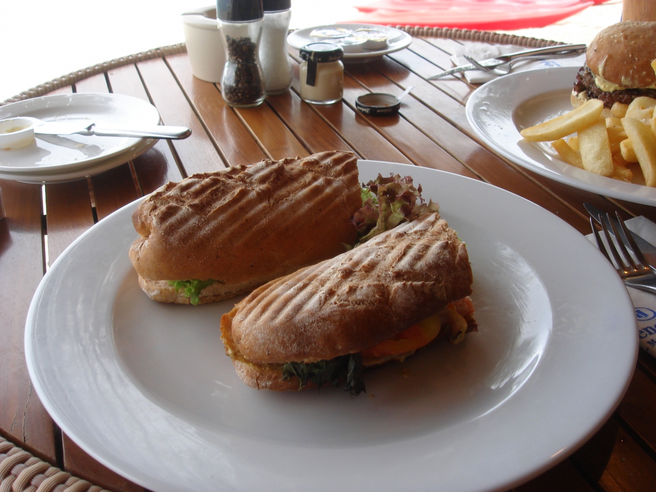 「ロツイグリル」で昼食。エビが有名らしくエビのパニーニを注文。メニューにヒルトンバーガーというものが…。珍しいので注文してみましたが、マスタードが効き過ぎていて辛い…。辛いのが苦手な人は食べられないかも。ホテル内という事もあり、お昼だけで4,000CFP位、割高です。