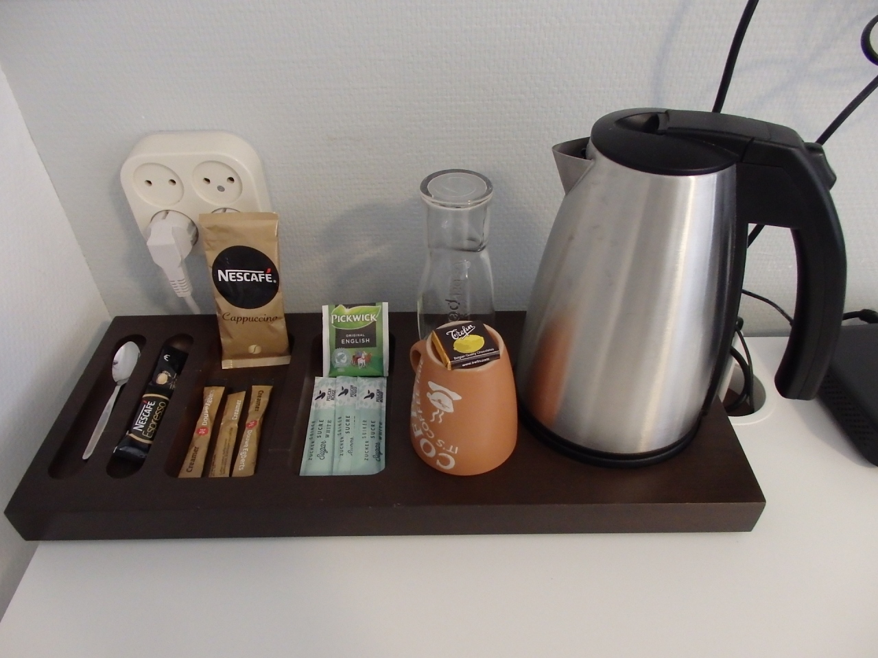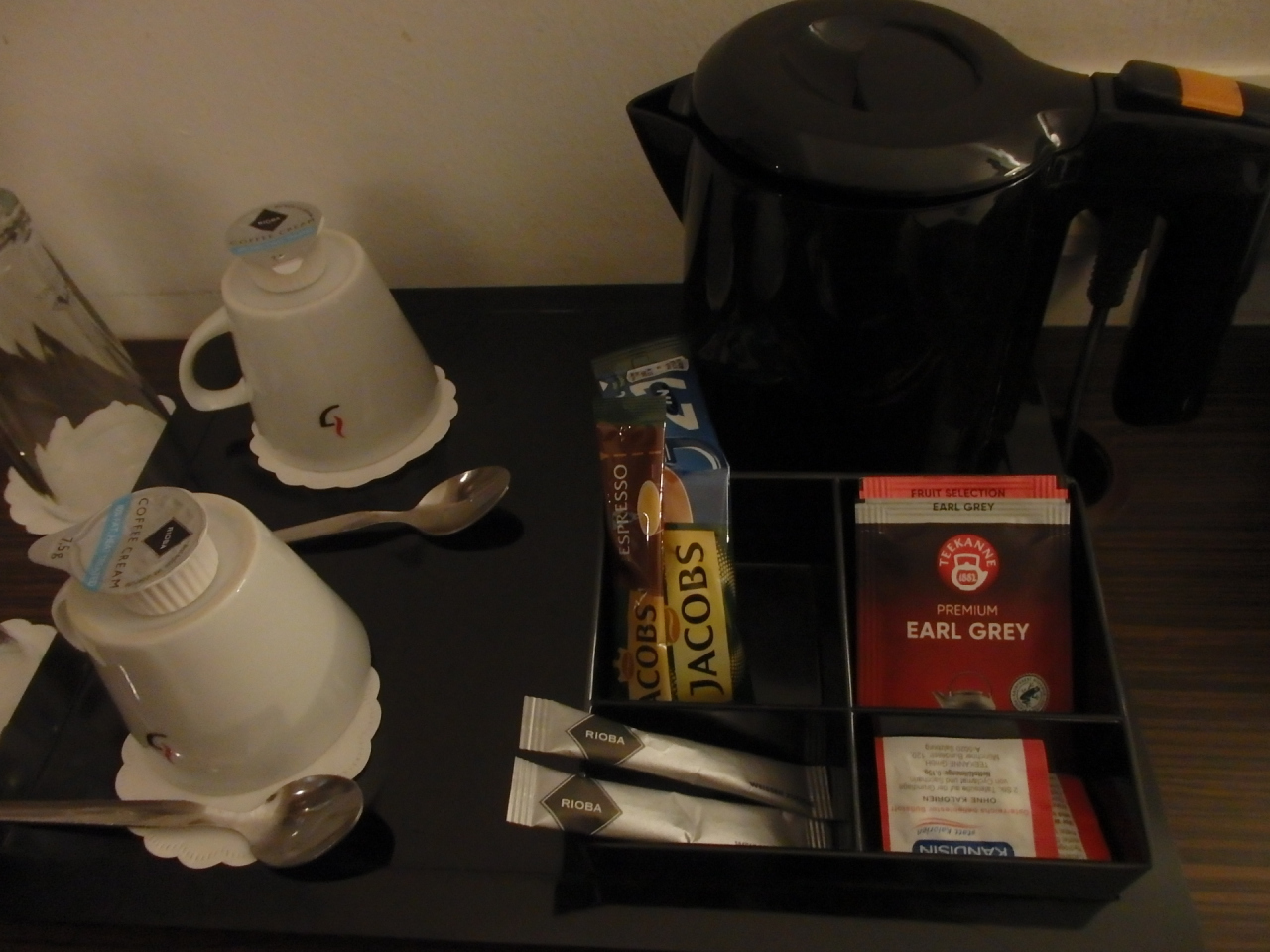 チェックインタイムは14:00~23:00。それより早めの到着でも、まえもって連絡をしておけばできる限りお部屋を用意してくれます。フロントそばには、無料のホットドリンクとクッキー&チョコレートのサービスがあり、自由に頂けます。