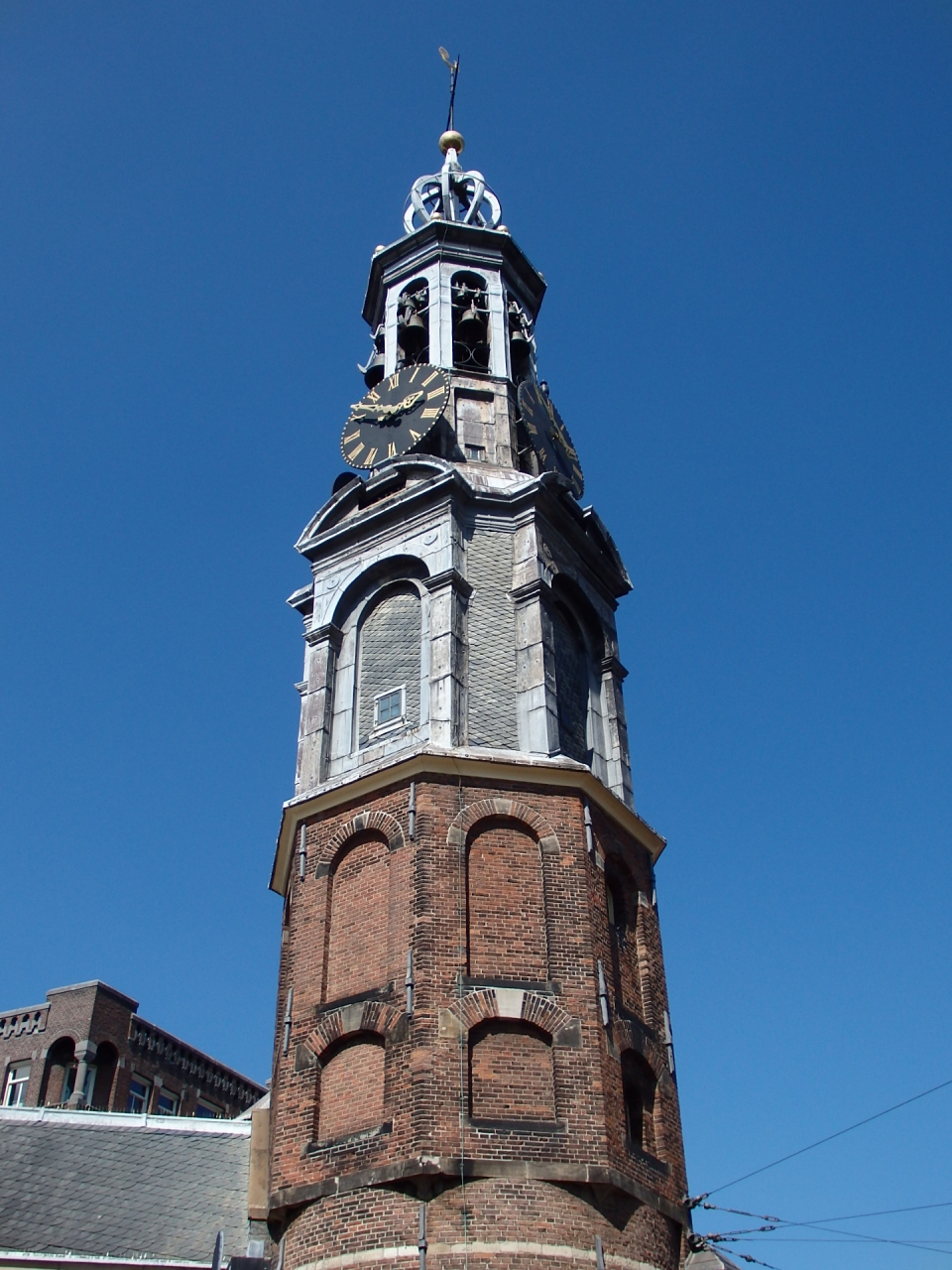 シンゲル運河とアムステル川の合流地点に建つムントタワーは1620年の建設。元は城壁の一部だった塔です。時計とカリヨンが設置され、この辺りがムント広場と呼ばれており、たくさんの人々が行き交います。1階にはショップが入っていますが、塔には登れません。