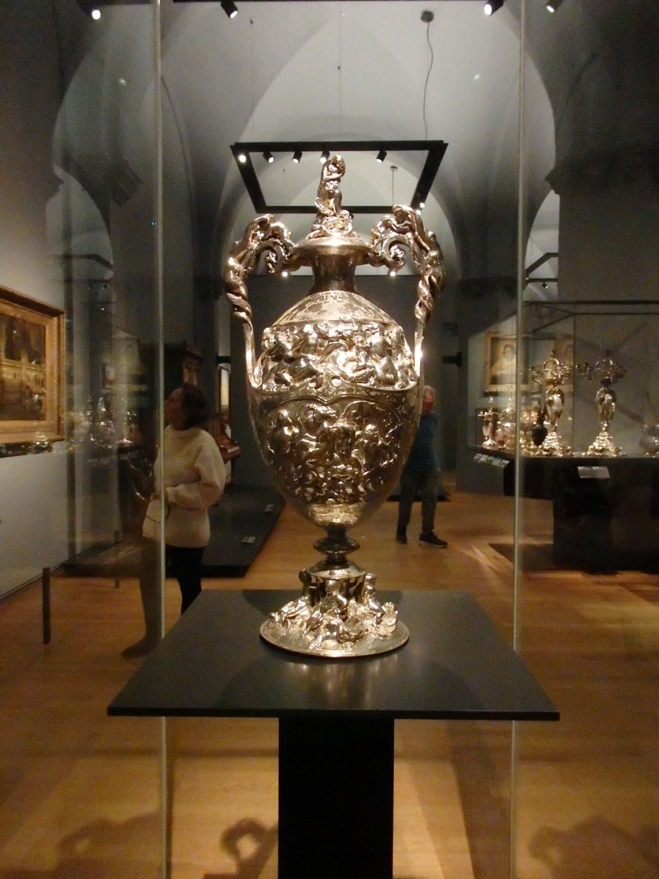 国立美術館は1800年にオランダ総督ルブランがハーグで開いた展覧会で展示された作品が基礎となり、1885年現在の場所に開館したオランダ最大の美術館。中央駅設計のペトルス・カイパースが設計した建物で、その美しさには定評があります。外観だけでなく、内部のグレートホールや壁に天井にと見事な装飾画やステンドグラスがとても素晴らしく、中に入る図書館も一見の価値あり。展示品は絵画だけでなく、豪奢な銀製品にデルフト焼きの骨董、美しい装飾の家具にジュエリーの数々!さらには精巧なドールハウスや勇壮なる帆船の模型に古い大きな地球儀もたくさん展示されていて、丸一日いても(いませんでしたが)見飽きることがないほどの展示物(質量ともに)でした。