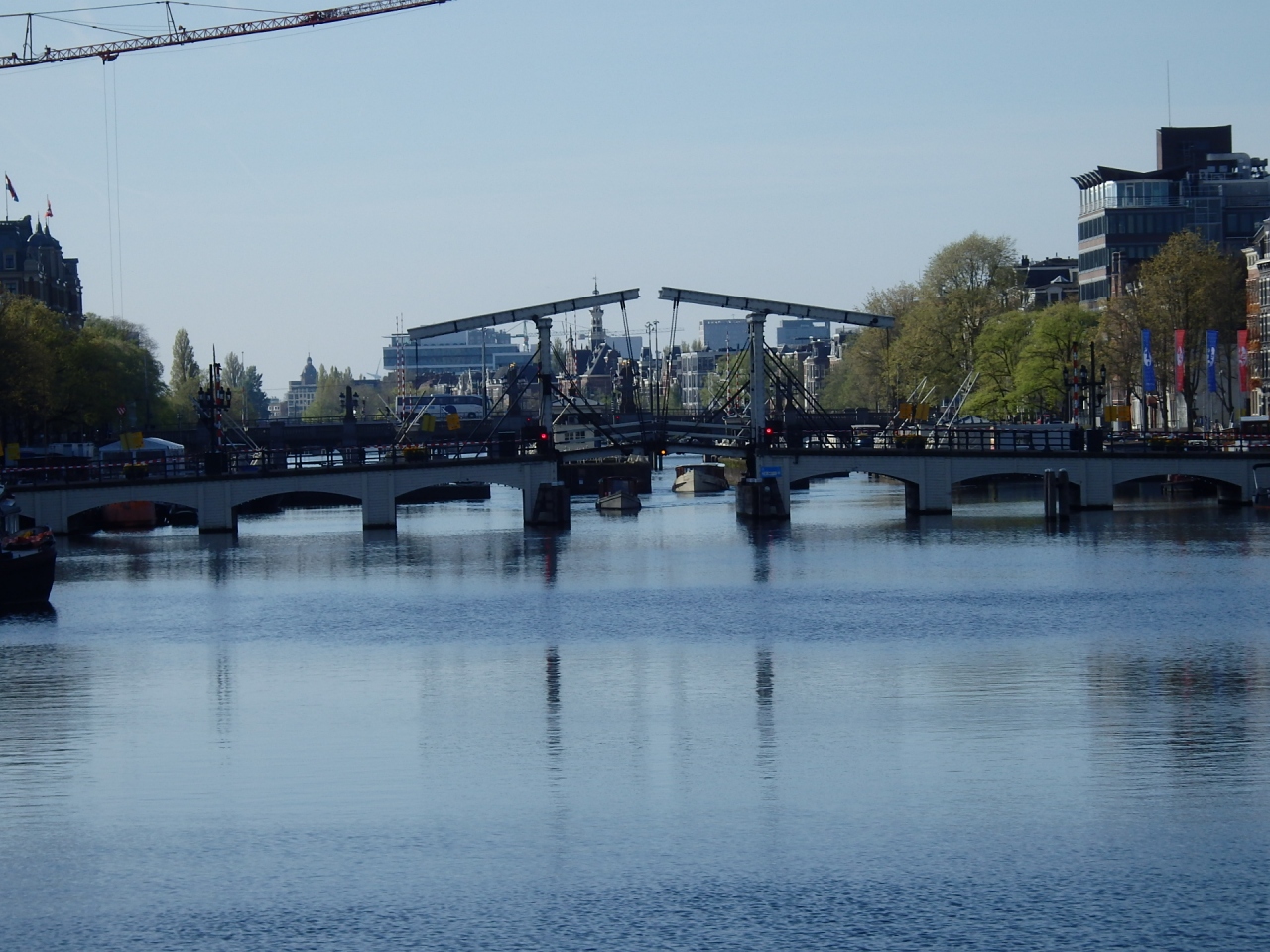 14番のトラム利用が便利で、ヘーレン運河とアムステル川の合流点近くにあるウォータールー広場からアムステル川に沿って南へ進むと「マヘレの跳ね橋」に行けます。エルミタージュ美術館アムステルダム別館の南に位置しています。