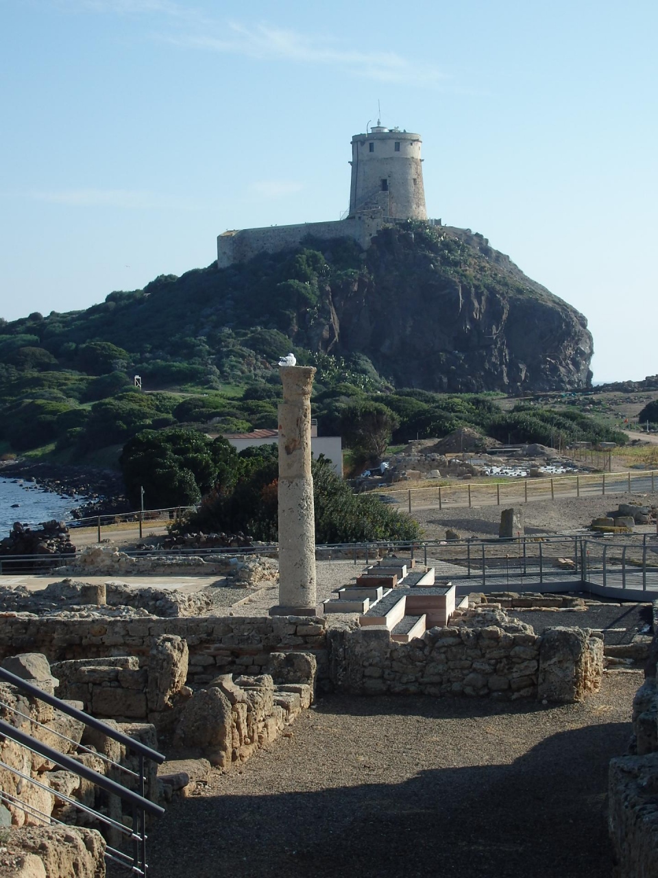 海に突き出た岬に、かつては大きな町であったノーラの遺跡が広がっています。