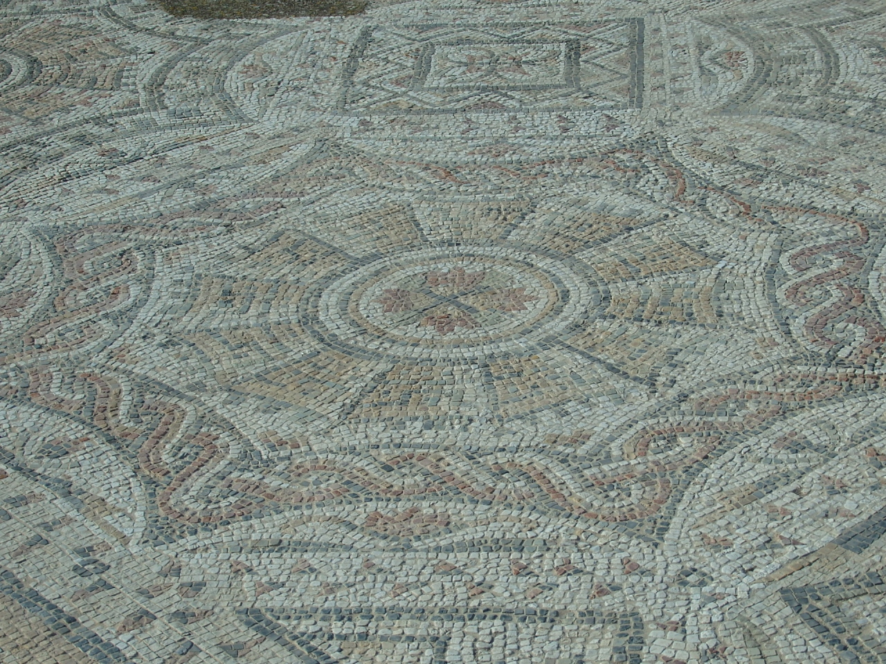 遺跡の合間にモザイク画もしっかり残り、もともとは雨水を貯水槽に送る仕組みになっていた円柱も残されています。