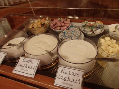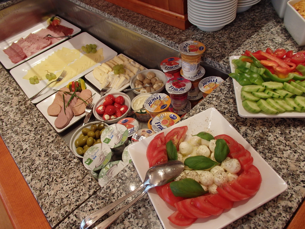 朝食は7時から10時、多種類のハム&チーズにトマトやキュウリ、ゆで卵、ミニハンバーグ、ヨーグルト、フルーツ、シリアル類にドライフルーツ、シュトーレン、数種類のパン、ジュースなど、満足させてもらえました。カプチーノも頼めば持って来てくれます。- 旅行時期