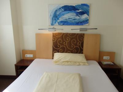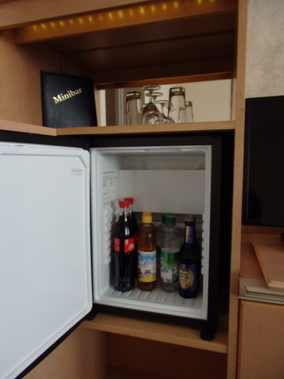 シングルルームは狭いですが、ベッド自体はダブルベッドで寝心地よく、新しくて綺麗なバスルームは使い勝手がよく、勢いも水捌けも良好でした。TV、TEL、ドライヤー、ミニバー(買ってきたものも冷やせるスペースもあります)など、設備は整っています。ただ、デスクセットかテーブルセットがないのが、書き物をするのに不自由でした。