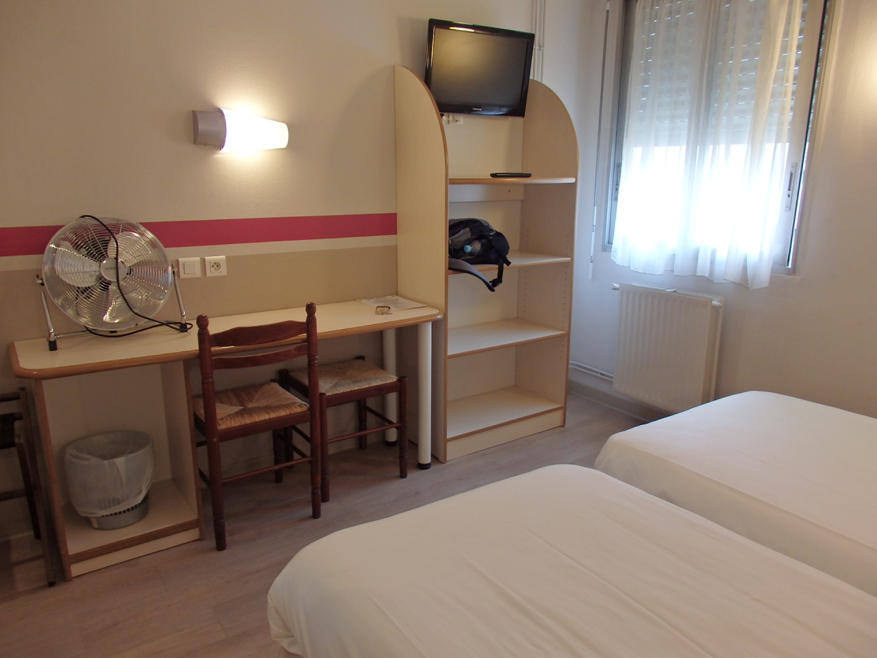 トゥールーズ・マタビオ駅舎を出て、運河を渡って徒歩数分のロケーションで大変便利。窓から駅舎が見えるツインベッドのお部屋に泊まりましたが、静かな滞在ができました。TV、TEL、ドライヤー、エアコン、コンセントはデスクセットの所にあって使いやすいですがデスクセット自体は狭く、棚などはありません。バスルームにはバスタブがあり、使い勝手が良く、水捌けもよかったです。