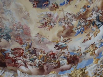 内部は豪華な美しい装飾が溢れ、特に丸いドームの天井フレスコ画は、スタッコ装飾で名高いシュムッツァーと画家ツァイラーの作品。どこをとっても素晴らしいものばかりです。これらの素晴らしい芸術が無料で見られるのも嬉しいところです。- 旅行時期