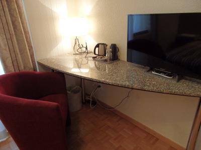 TV、クローゼットと箪笥、テーブルセットくらいのシンプルな部屋ですが居心地はよかったです。ただ、夜中、上階の歩き回る音がよく聞こえたのがマイナス点。電気ポットは、同階の4室で1台、廊下に置かれていました。- 旅行時期