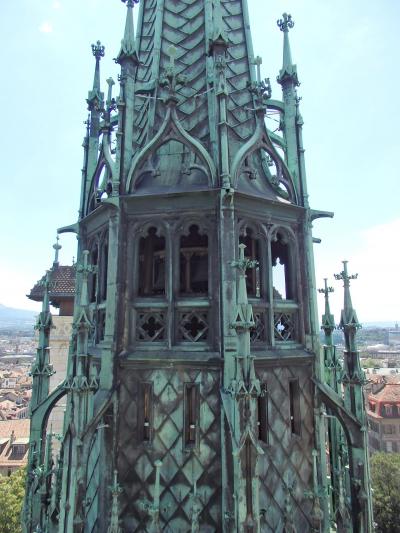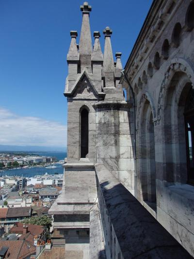 ジュネーヴ市内からもレマン湖上の船の上からも目を惹く塔のあるサン・ピエール大聖堂。12~13世紀にかけて建立され、その後、何度も改築・増築を繰り返したため、様々な建築様式が混在しています。