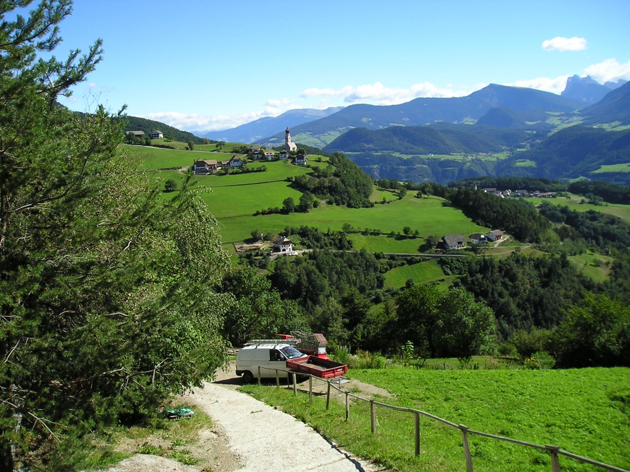 1.ボルツァーノ駅から、駅を背にして右手のとおりを600Mほどのところにある、ロープウェイで12分。レノンというまちにつきます。すぐ上にある鉄道駅ソプラボルツァーノから15分でコラッポに到着。レノンやコラッポの小さな町を散策するのもおもしろいのですが、コラッボからさらに30分ほど、のんびりした田舎町を歩いて ピラミデ・ディ・テッラという、自然の風化作用でできたオブジェを見に行くのもよかったです。遠くのドロミテ山塊を眺めながら、チロル風の牧草地を歩いて、さらに森の中に入っていくのですが、急に、森の木々の中に混じって、谷間に見えるのは、石を帽子のように載せた細長い三角錐の赤い色をした岩岩の林。いくつもの赤茶色のピラミッドがとても不思議な光景でした