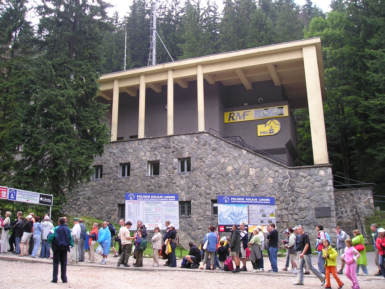 ザコパネのバスターミナルから1時間に1~2本バスが出ていますが、町中のバス停で待っていると、ワゴン車の少し大型のミニバスがフロントガラスに「Kzunice」という表示をつけてやってきます。何本も便があるので、この方が早くKzuniceにいけます。下りるときに、一人2zlずつ払っております。おりたら、広場の右端にある階段を上って行くと、ロープウェイ乗り場があります。ロープウェイ2本乗り継いで20分ほどで頂上駅です。