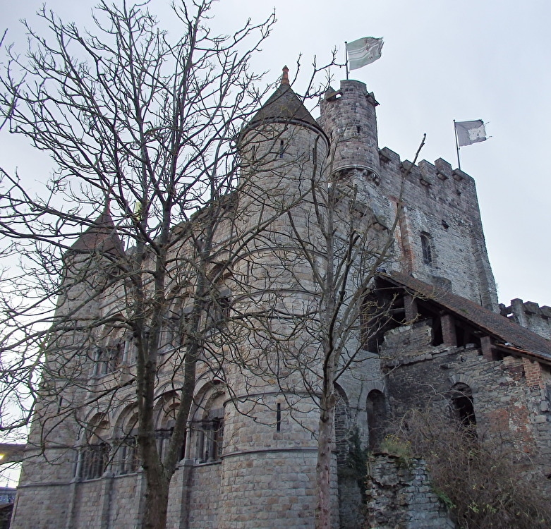 コーレンレイやグラスレイの北側に位置するフランドル伯の居城は、ゲント最古の広場聖ヴェール広場に面しています。このお城はフランドル伯アルヌルフ1世がバイキングの侵入に対抗するために10世紀に建てた要塞に始まり、フランドル伯フィリップ・ダルダスによって1180年に城塞に造り直されました。十字軍がシリアに造った要塞を模して造られた堅固なお城で、周囲を濠で囲まれています。14世紀半ばまでフランドル伯爵の住居として使用されていましたが、14世紀には軍事機能を失い、拷問室や牢獄はアウデブルグ学校、伯爵領の造幣局、裁判所などの公的機関として利用されるようになりました。その後18世紀には綿製糸工場と工員の宿舎としても利用されました。実戦で損傷を受けることがほとんどなかったため造られた当時の姿をほぼ保っており、改修工事を経て現在は一般公開されています。