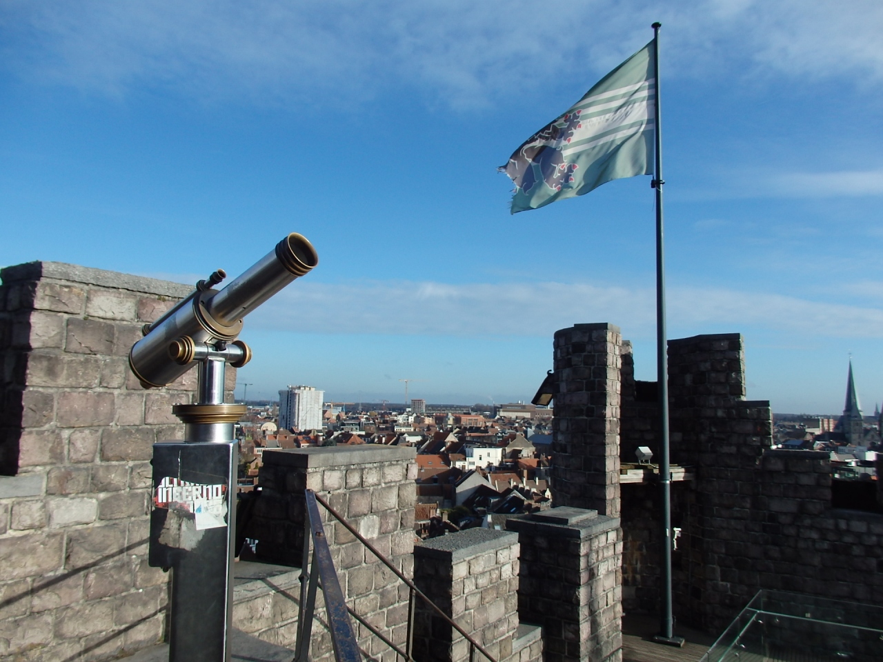 内部は城塞としてのいかつい感じがそのまま残されていて、優雅な雰囲気は全くなく、武器博物館や拷問博物館のような展示が見られます。見張り台としての役目のあった屋上テラスからはゲント市内を見渡せます。- 旅行時期