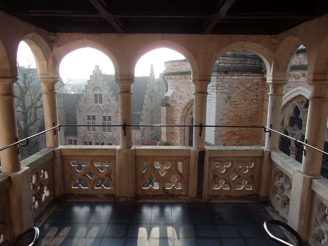 バルコニーからは右側に聖母教会、左下にはボニファシウスの橋を含めた運河沿い風景が見下ろせ、館内の見学に疲れた時にひと休みできる素敵な空間です。- 旅行時期