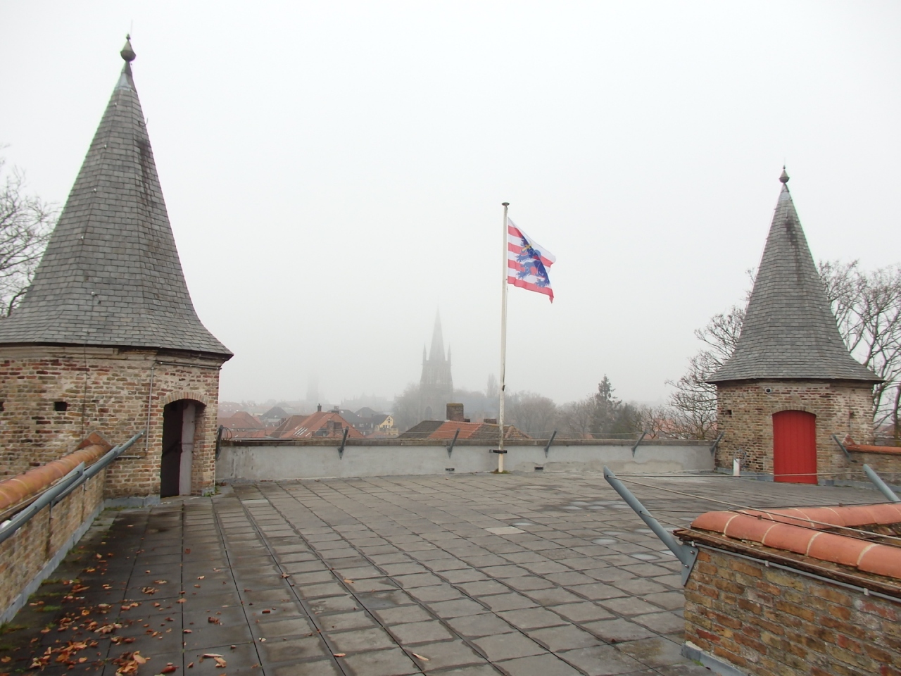 ブルージュの町は卵型に取り囲む運河に囲まれており、その運河に架かる城門がいくつか残されています。13世紀から14世紀にかけて築かれたたくさんの城門のうち残っているのは、運河沿いの東に十字門、西側に鍛冶屋の門、北西にロバの門、そして南東にゲントの門の4つ。南東のゲント門はミュージアム・パスを提示して見学ができます。展示は武器や鎧兜、昔の町のミニチュア、大砲と砲丸などと少ないけれど屋上テラスからの眺めがよかったです。