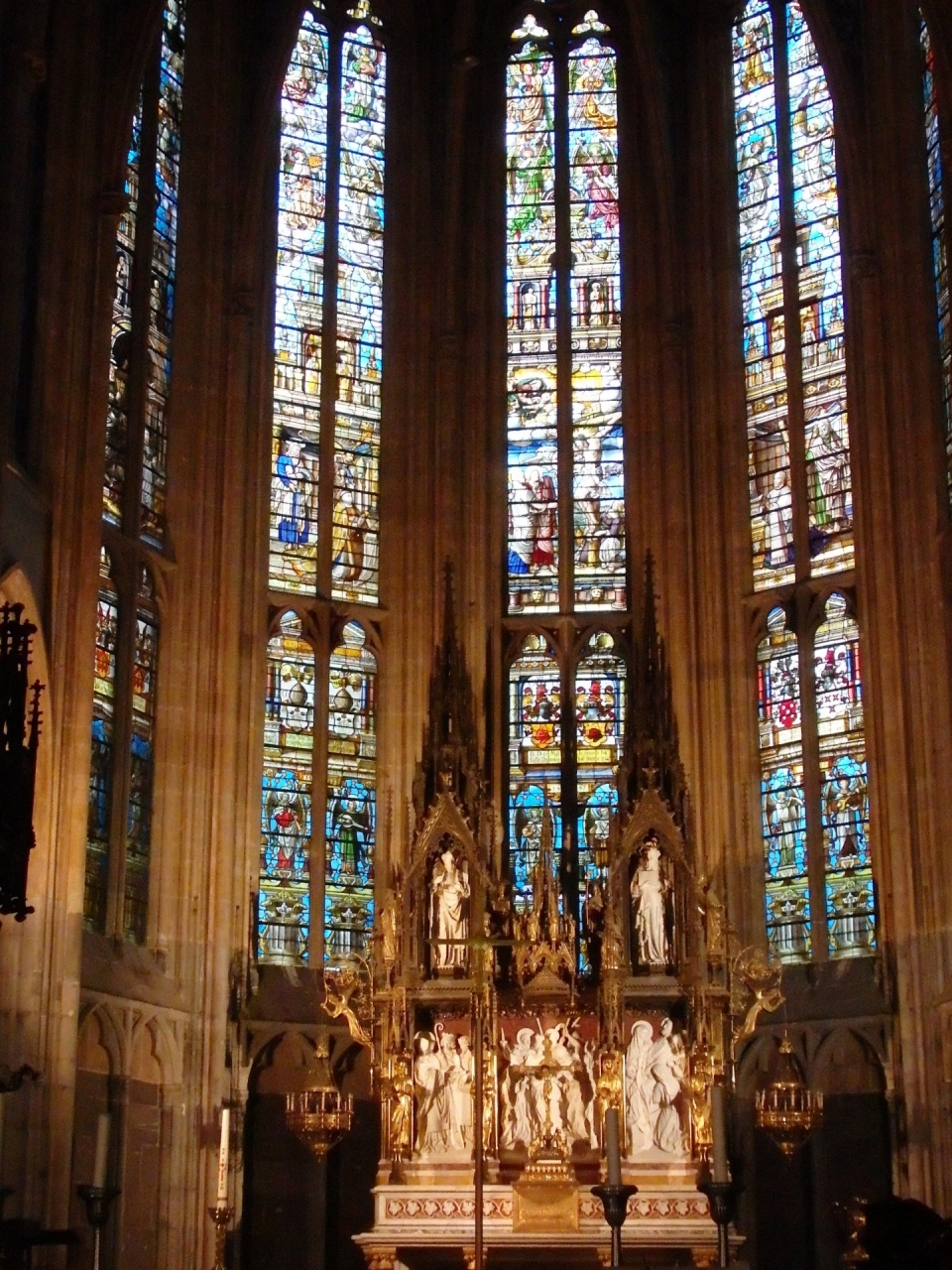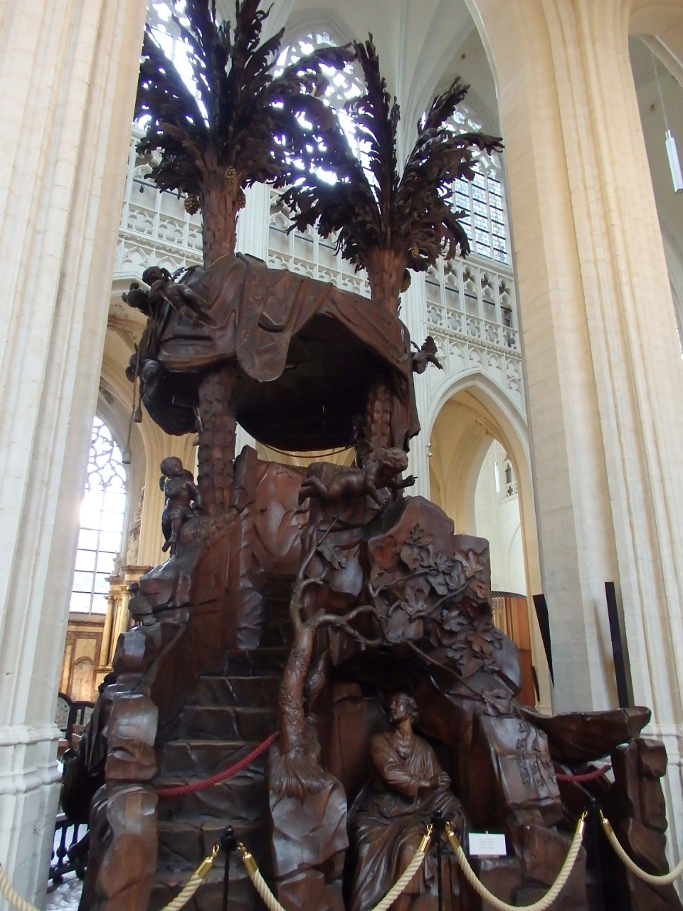 ベルギー最大のゴシック様式で建てられた大聖堂内はさながら美術館のよう。たくさんの美しいステンドグラスのある祭壇や柱には各国の言語での説明書も添付された絵画や彫刻などにあふれ、大聖堂内の隣接するレストランで一休みすることもでき、何時間でも見ていたくなる空間でした。- 旅行時期