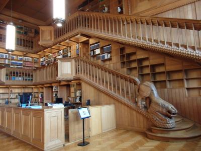 ルーヴェン駅から徒歩10分ほど。広いモンセニュール・ラドゥーセ広場に面して建つネオクラシック様式の建物内に入る大学図書館は、木造の明るい温かみのある広いスペースに、3段重ねのような階層に通路が設置されて蔵書がびっしり並んでいます。長細いデスクがいくつも並ぶ様子は圧巻とさえ言えそう。
