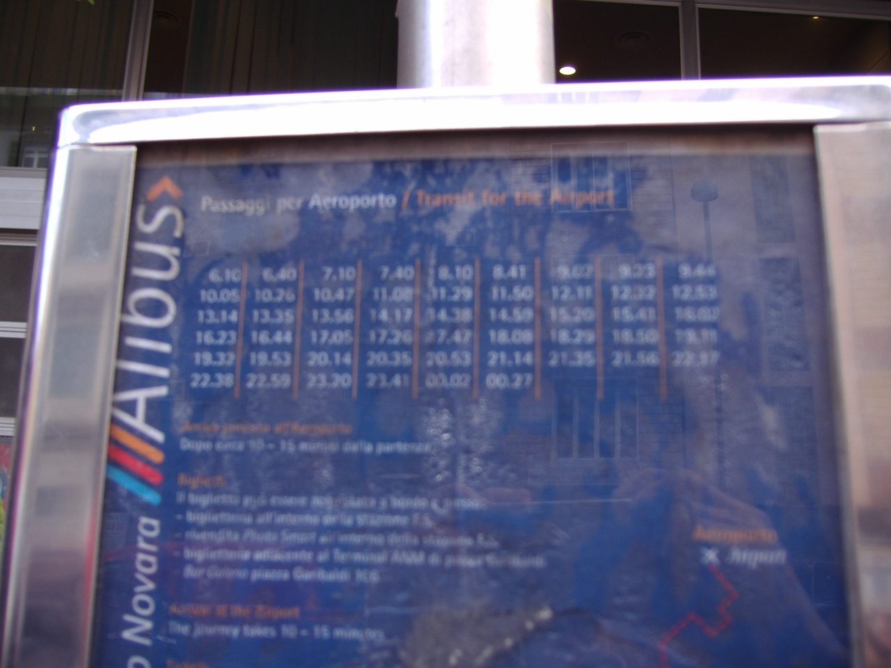 駅前のバスターミナルから一時間に1~2本バスの便があります。朝の分は、7:10、8:00、8:40、9:00、9:30・・・とインフォメーションで教えていただきました。バスによって、発車するバス停番号が違うので、切符売り場で買った切符(7zl)