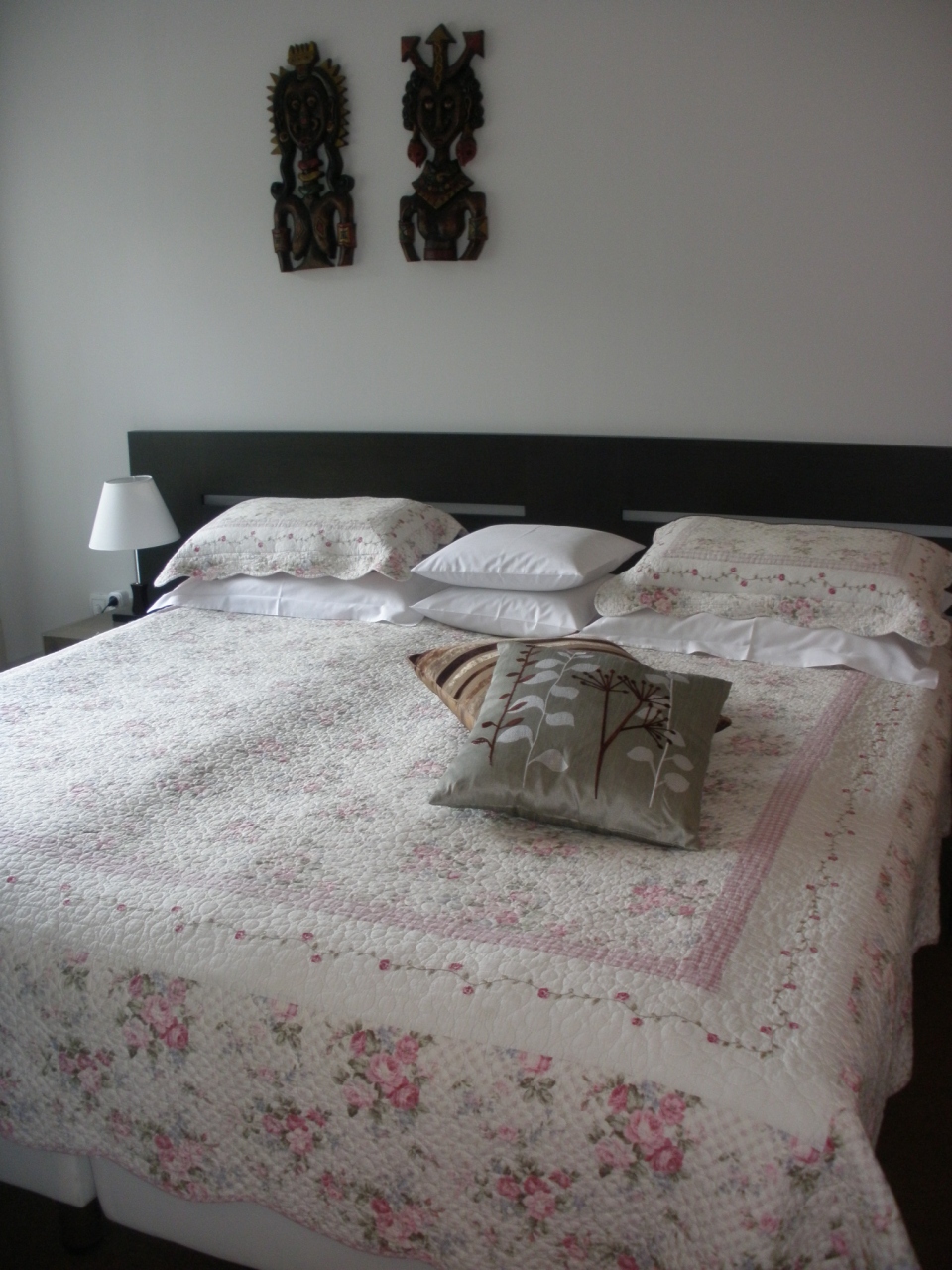 一人で泊まったのですが、とっても広いお部屋「セネガル」。アフリカをイメージした内装です。娘さん(たぶん養子さん?)の生まれ故郷がセネガルなんだそうで、家具や装飾の可愛い小物がアフリカに関連したもので、なかなか雰囲気が良かったです。