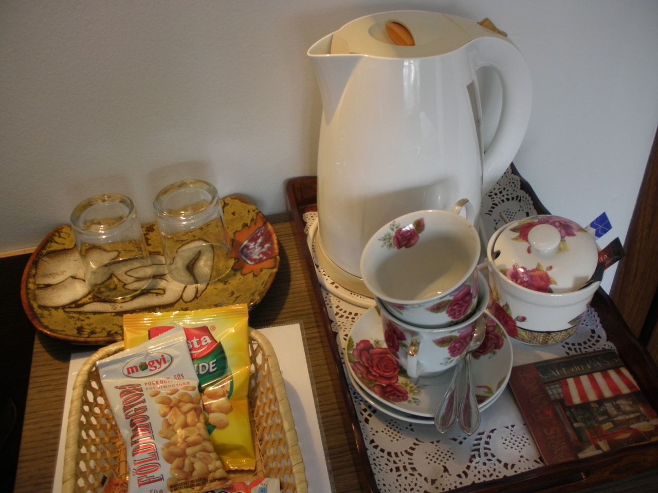 - 大きなベッドでゆったりしていて、紅茶コーヒーセットもセットされている
