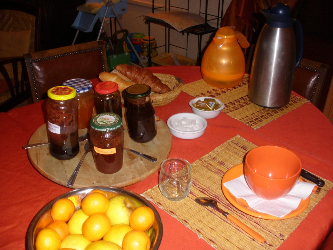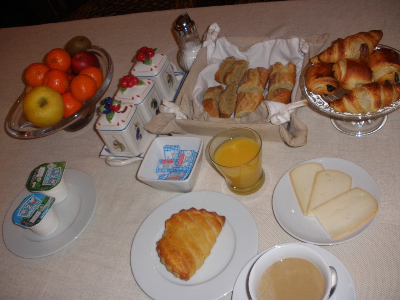 朝食は8:00~10:00、クロワッサンとバケット、手作りジャムが5種類、丸ごとフルーツ、ヨーグルト、個包装のチーズ2種、オレンジジュース、シリアル2種、コーヒーとシンプルですが美味しくいただけました。- 旅行時期