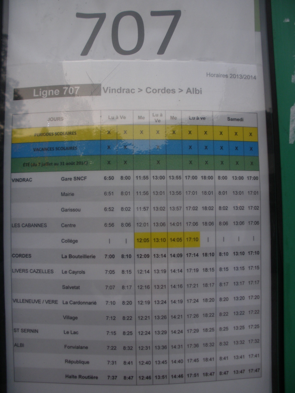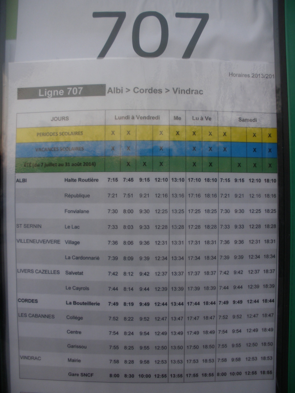 アルビからコルド・シュル・シエルへ行く場合のバスは707番のバスです。
