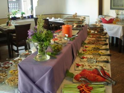 朝食は8:00~10:00、泊り客の人数に応じて、ビュッフェ形式、オーダー形式と変化があるようでした。どちらとも、温かいメニュー、冷たいメニューとも種類が豊富で美味しく目でも楽しめました。