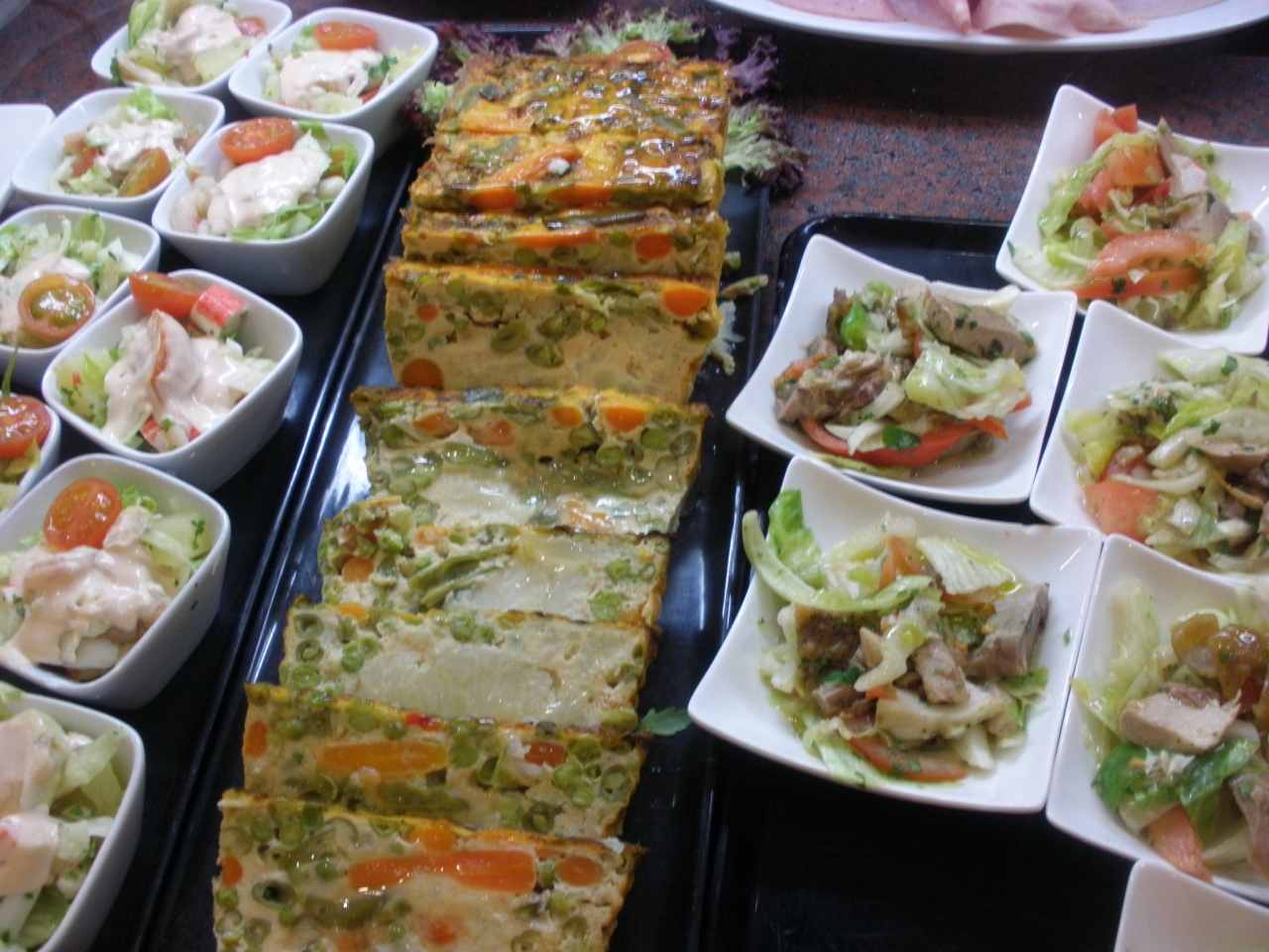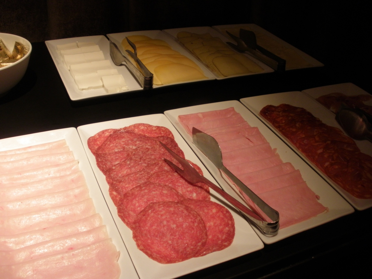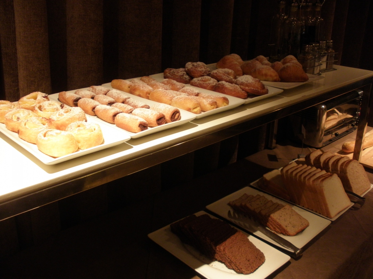 一人分ずつ可愛いとり皿に入っているお料理は、ワゴンに乗せられてドンドン運ばれテーブルに並べられます。定番のハム&チーズや温かいメニューはビュッフェ形式で取り分けます。パン類、デニッシュ類、クロワッサン類、ドーナツやデザートも豊富でした。