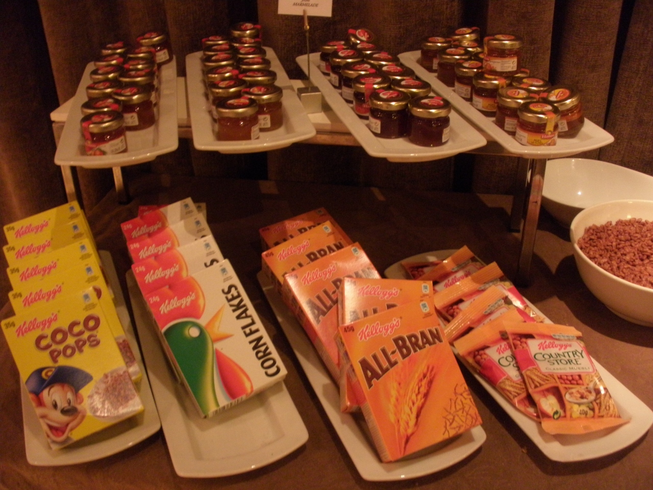 朝食は8:00~10:00、いたって簡単な、パン類、クッキー類、フルーツ数種、ドリンク類くらいです。