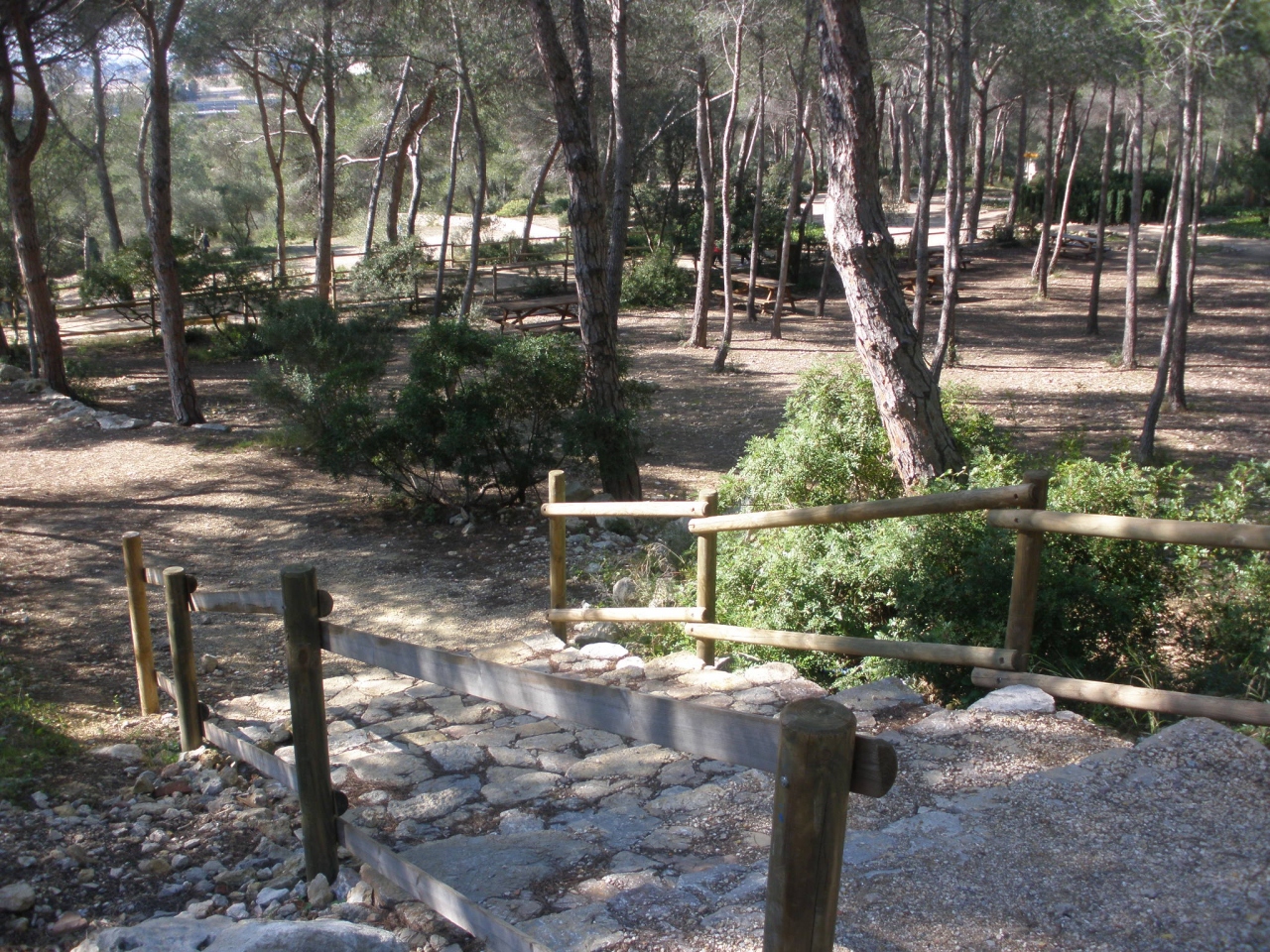 タラゴナの駅舎を背に、右方向に延びる通りを200メートルほど進み、通りを渡って階段へ進みます。