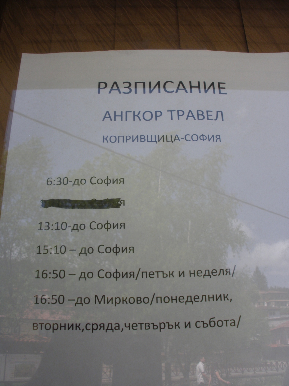 ソフィアからコプリフシティッツァへは、国鉄の列車か駅隣にあるバスターミナル・セルディカから出るAngker社のバスで行くことができます。