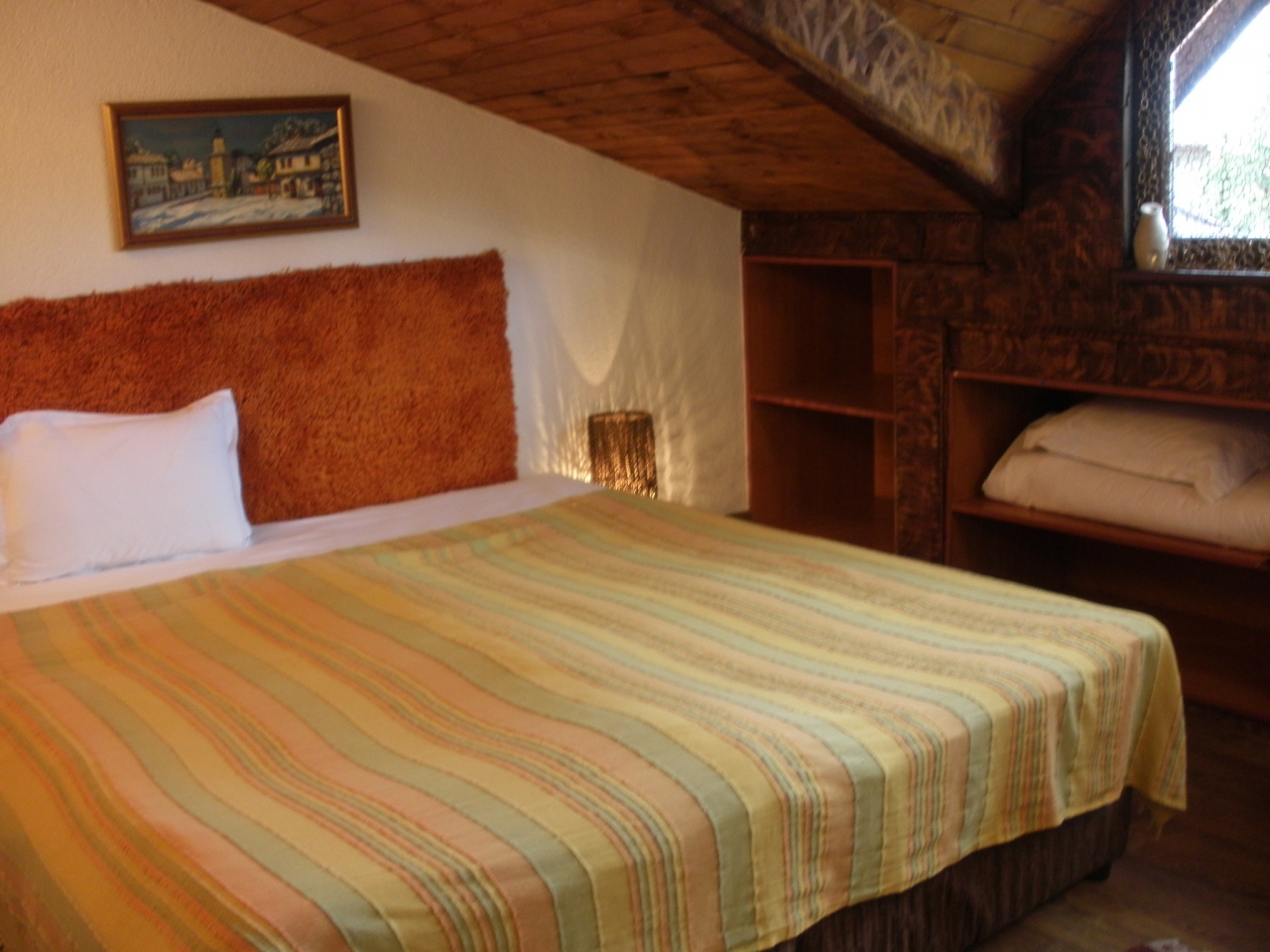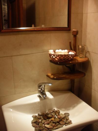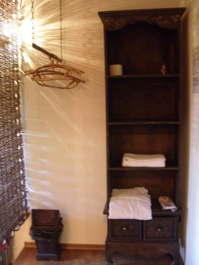 一人で泊まったけれど、ダブルベッドのお部屋で、木彫りの棚やテーブルやゴミ箱が手作り感がありいい雰囲気のお部屋でした。