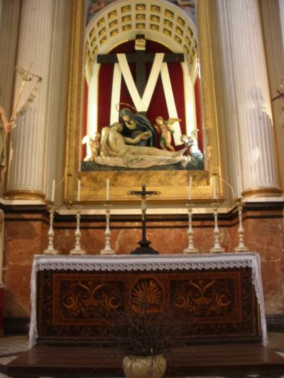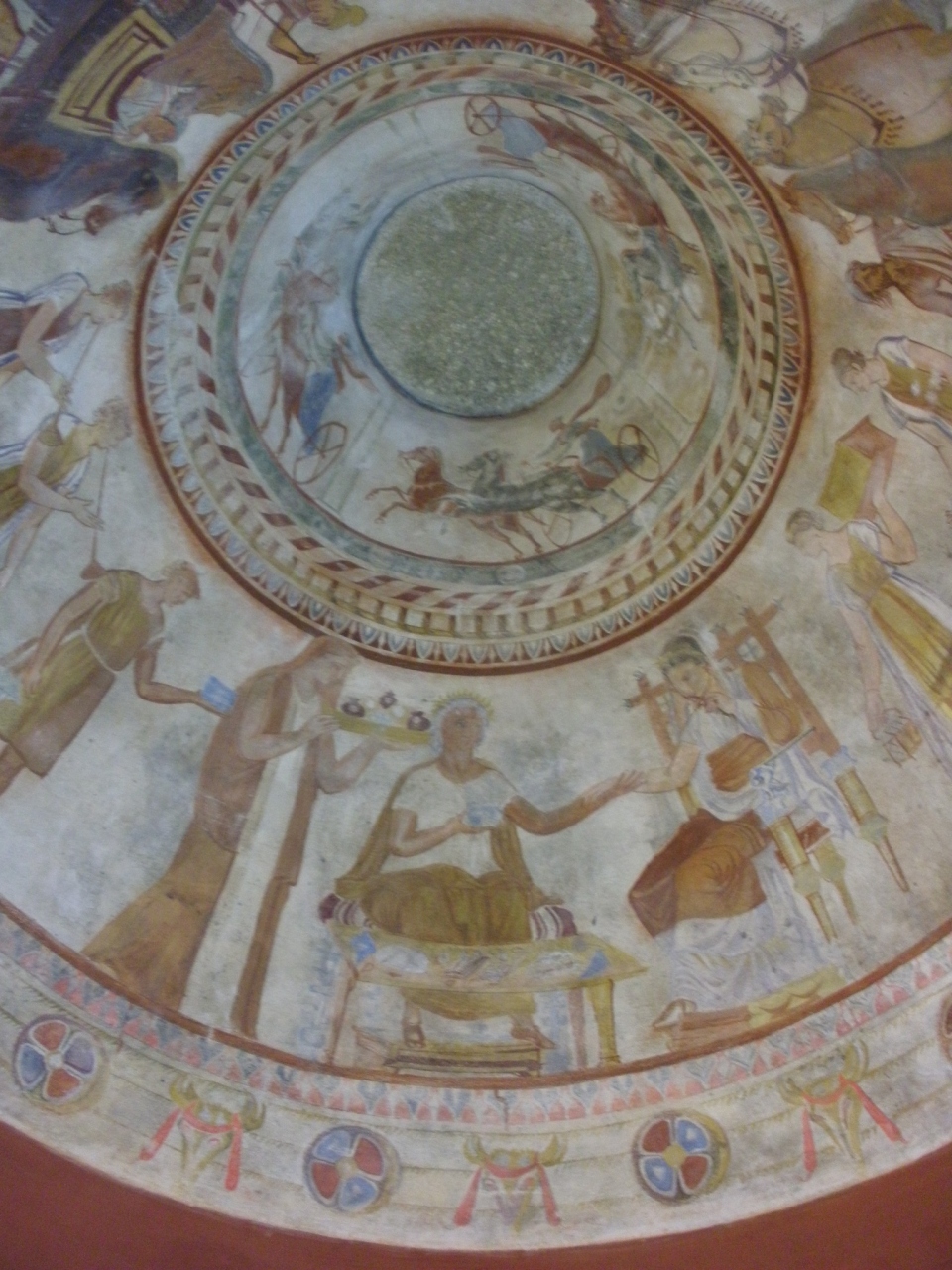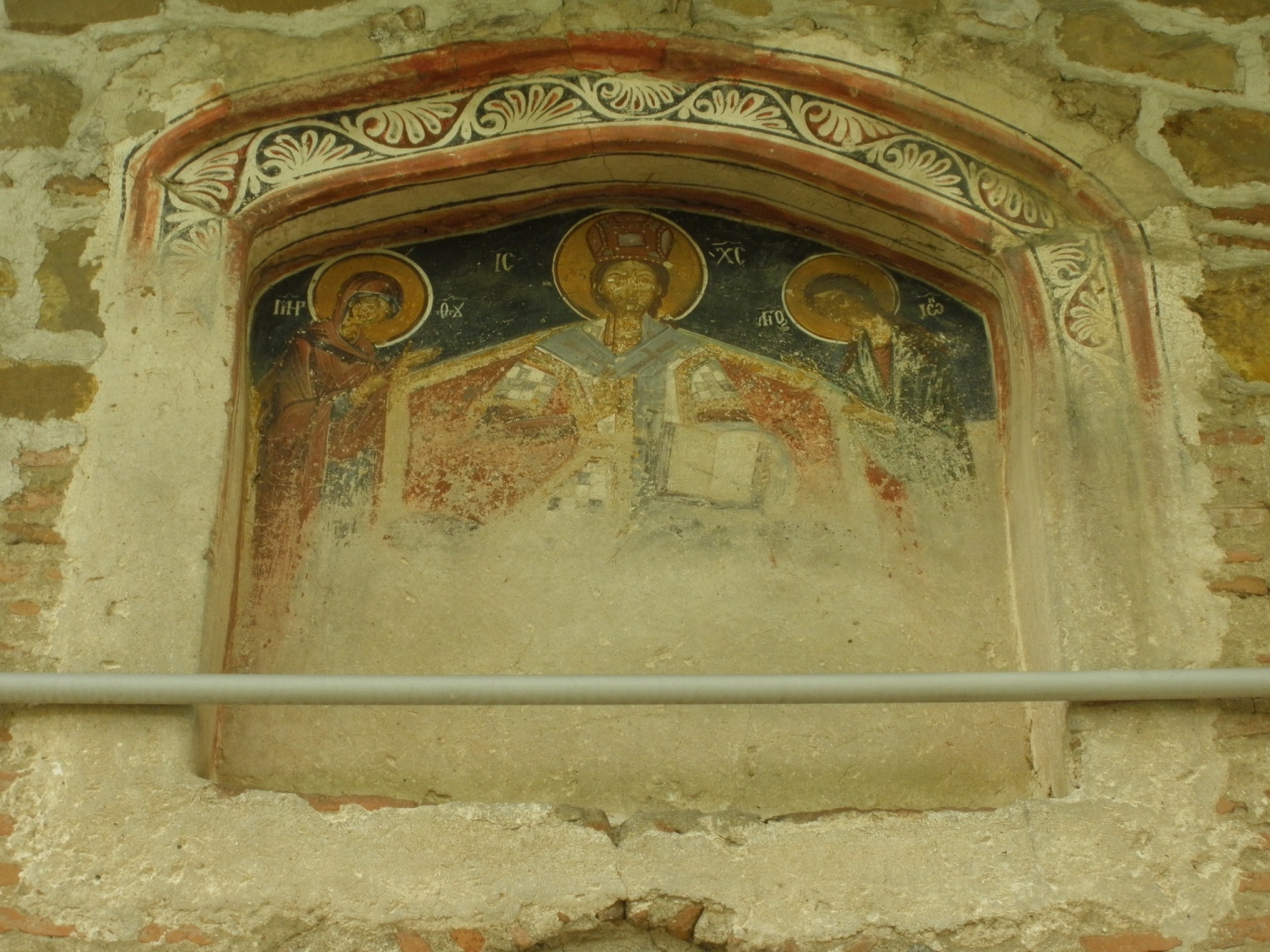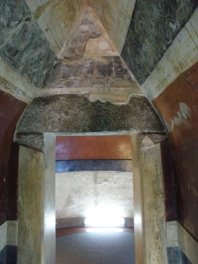 中は撮影禁止ですが、硬直した暗い色調のフレスコ画で埋め尽くされています。