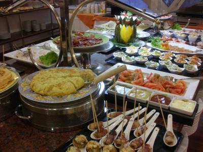 朝食は7:00~10:00、パンとミニデニッシュやクロワッサン、エンサイマーダ、ハム&チーズ、フルーツ(丸ごとのもの、スライスしたもの、グラスに入ったフルーツサラダ)、箱入りシリアル、ジュース、ホットドリンク。- 旅行時期
