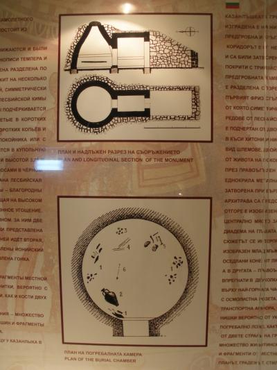 レプリカと言ってもとても精巧なもので、紀元前4世紀後半から紀元前3世紀頃のものとされるトラキア人のフレスコ画で、戦闘場面やお葬式の様子が数種類の色を使って描かれています。