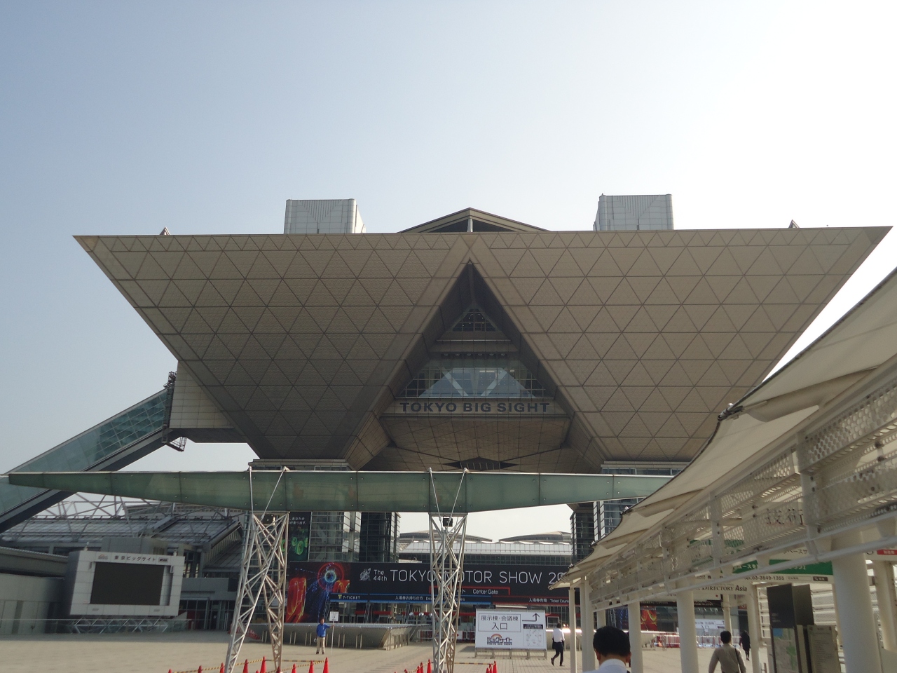 モーターショーの開催前に下見に行きました。準備の真っ最中で内装工事の職人さんが大勢休憩や食事の為に海の見える所でくつろいでいました。