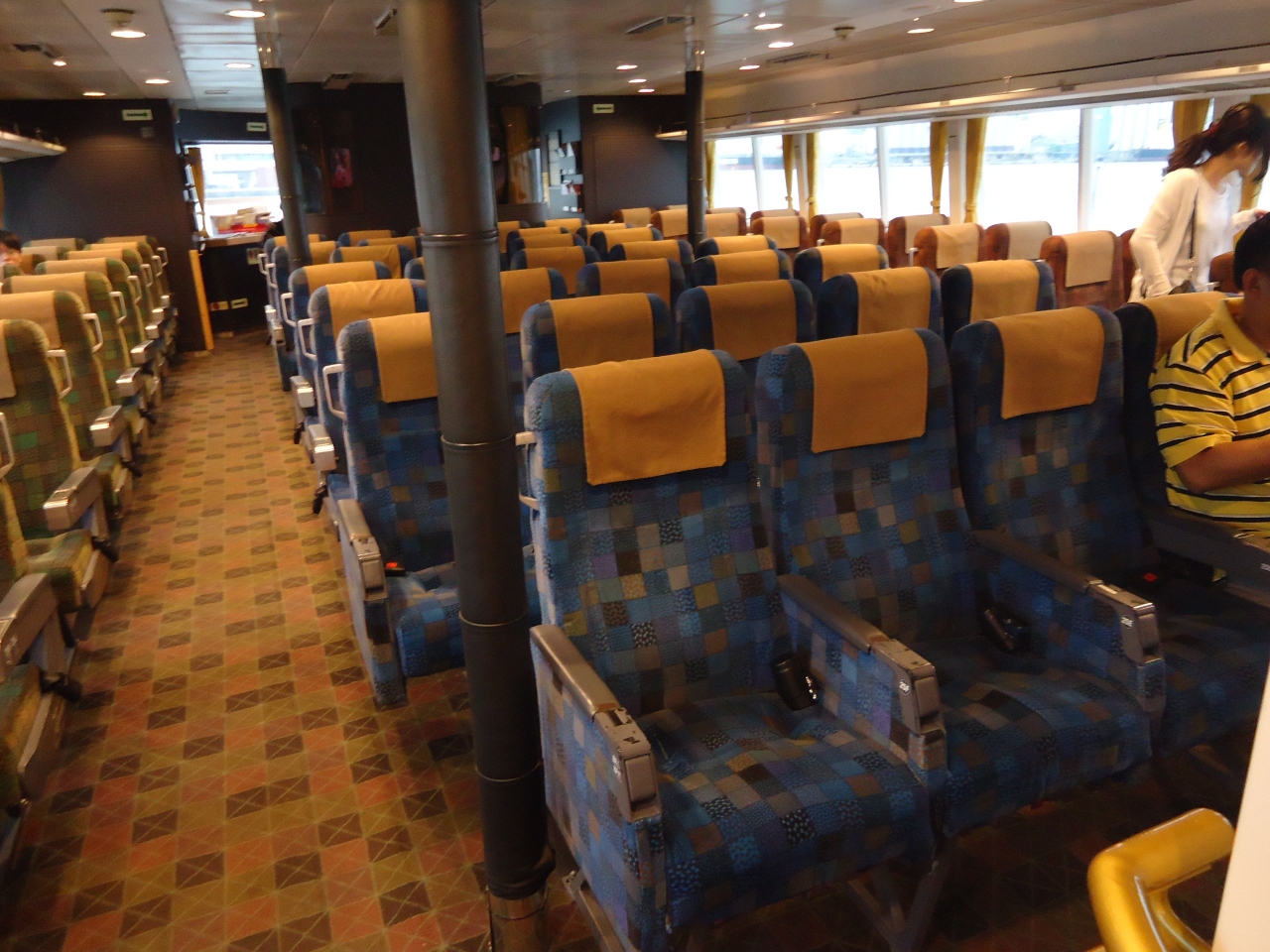 フェリーとは違い、乗って観ると飛行機の座席の様でシートベルトを締めるように言われます。想像以上に快適でしたが、創造以上に揺れもありました。揺れに関しては海の状態もあるのでしょうが。