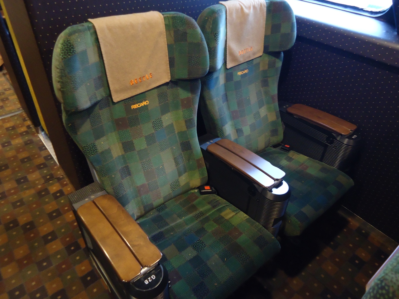グリーン席は3000円プラスで、ドリンク・お菓子・スリッパとリカロシートです。
