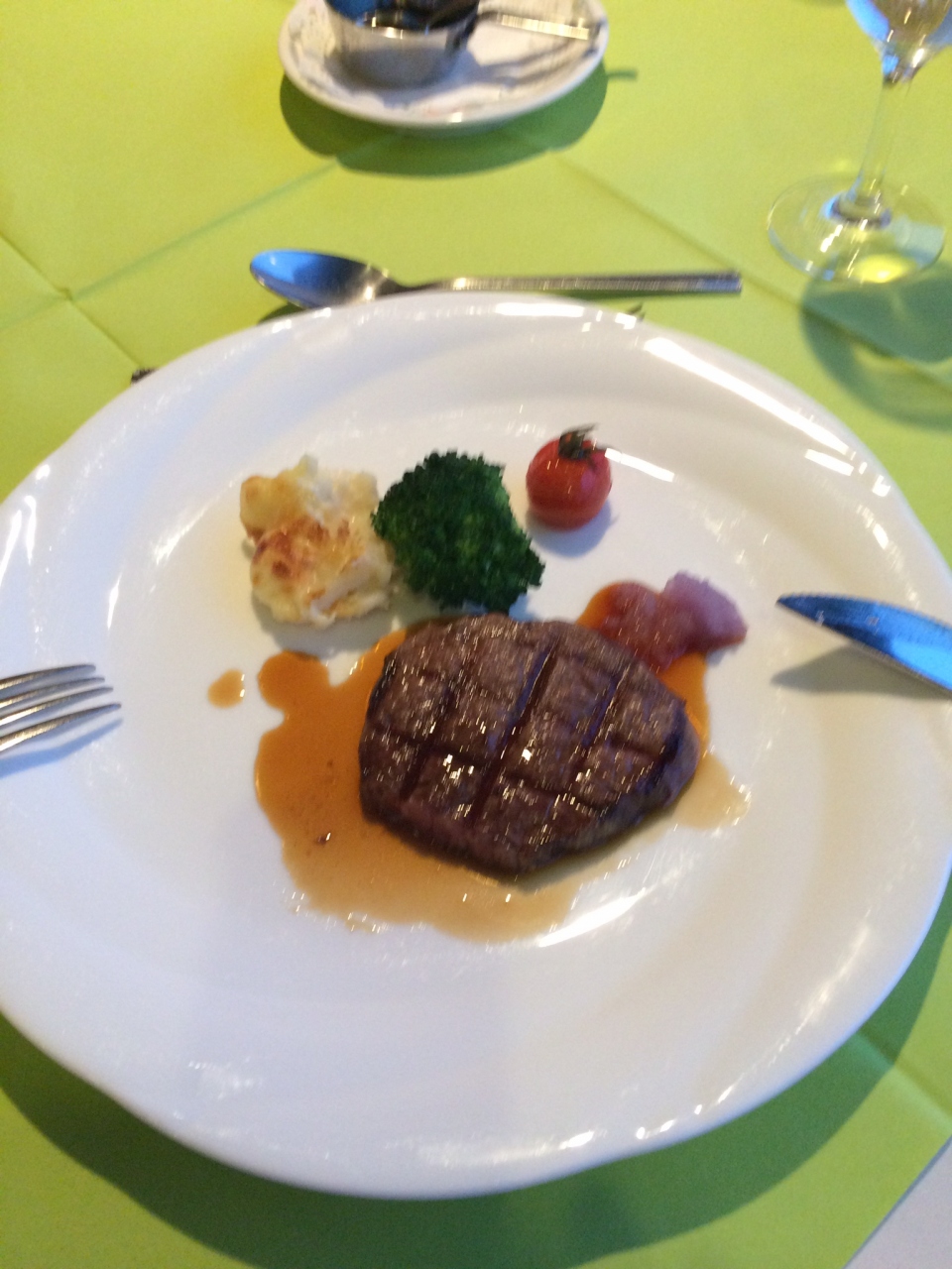 追加料金でメインを和牛やオージービーフに変えることが出来ました、温泉なので浴衣にスリッパでもOKでした。