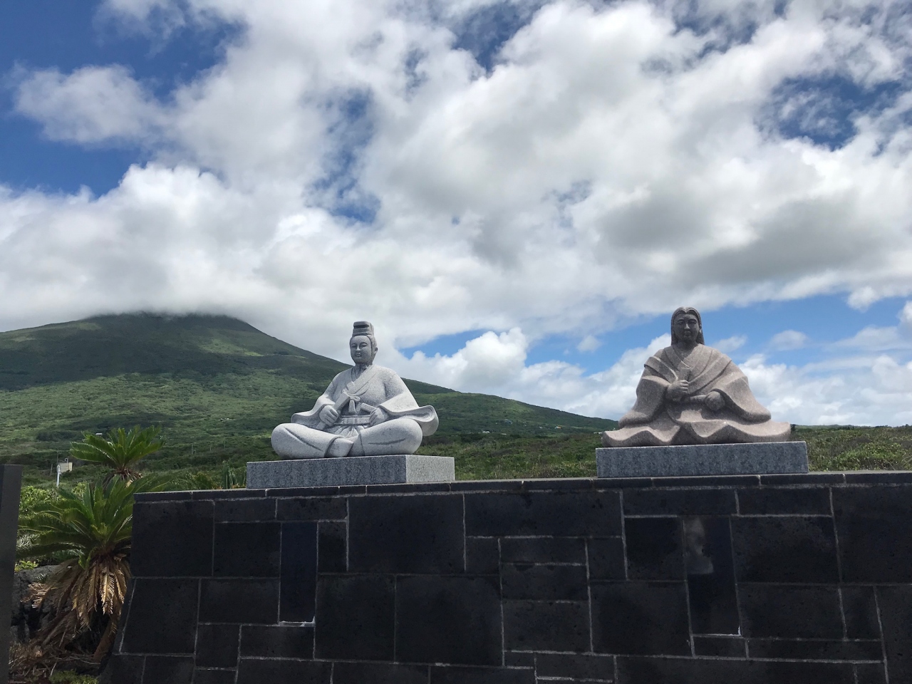 八丈富士をバックに旦那さんと並んでいました。- 旅行時期