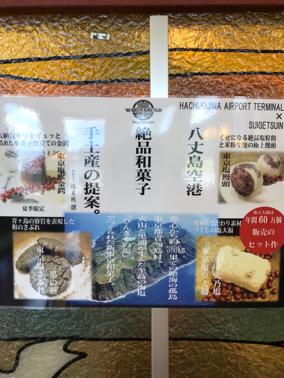 帰りにランチを食べながら気になるお土産のポスターをガン見していたら、塩大福を推してくれる店員のお姉さんの勧めでお土産に買いました。 本当に絶品で買い占めて正解!と家に帰ってからも八丈島余韻にしたりました。一緒に買ったマンゴープリンと島寿司も美味しくて、教えてくれたお姉さんありがとうと思いました。