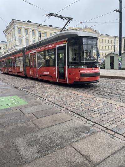 赤いトラムとすれ違い。マーケット広場の方へ行ってみました。
