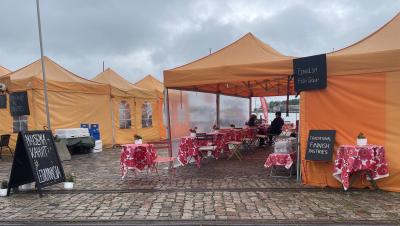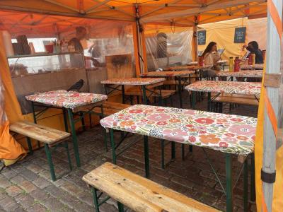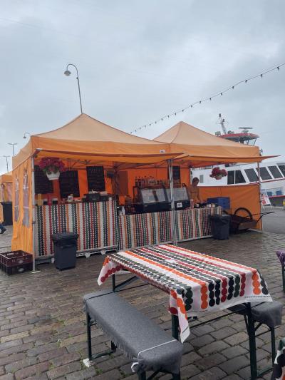 店舗のテーブルクロスがマリメッコ(ウニッコ)可愛い!