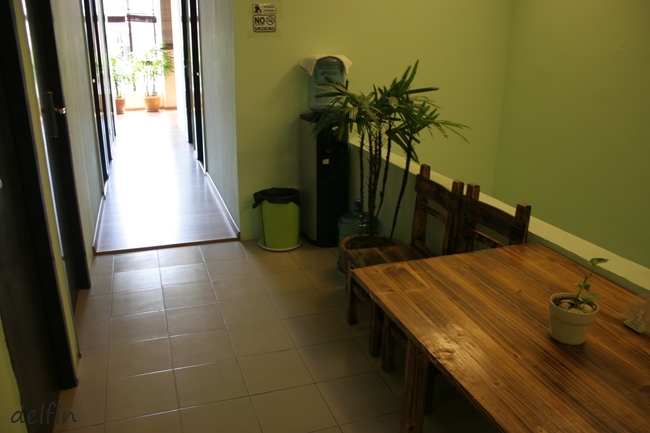 アパートを改造したような作りなので、リビングやキッチンがなく、フロントもテーブルのみ。個別ロッカーがあり、便利。