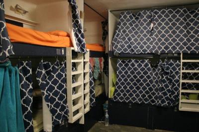 各部屋に二段ベッドがあり、ロッカーも備わる。