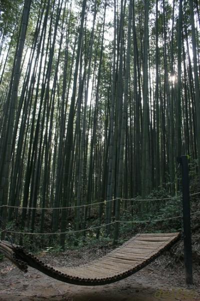 広い駐車場から下る形で吊り橋へ歩いて向かう。