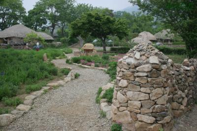 実際に生活する人が居住する、朝鮮時代の城と家々が現存する民族村