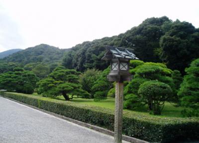 こちらは宇治橋を渡ってすぐの神苑。きれいに手入れのされた松が美しい庭で...