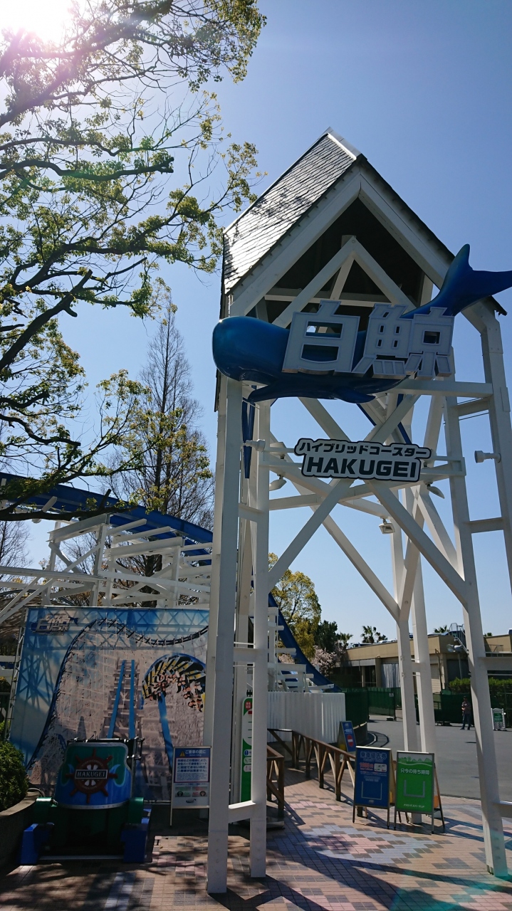 今年3月下旬に旧ホワイトサイクロンを一新してできたハイブリッドコースター、その名も白鯨(はくげい)に早速乗って来ました。
